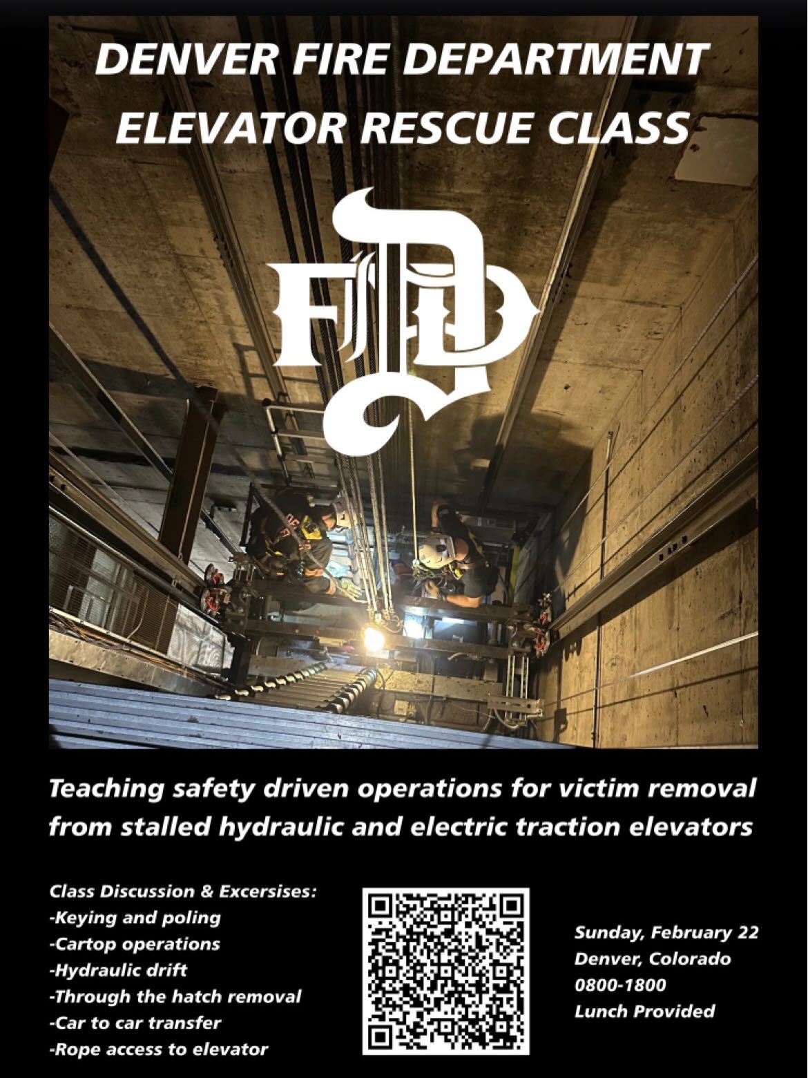 The Denver Fire Department is hosting a specialized course focused on safety-driven operations for victim removal from stalled elevators.