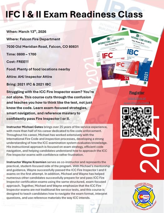 Join instructors Michael Gates (25+ years fire service experience) and Wayne Krzemien for a strategy-focused workshop. Instead of traditional memorization, you will learn exam-focused strategies, smart navigation, and reference mastery to confidently pass Fire Inspector I or II.