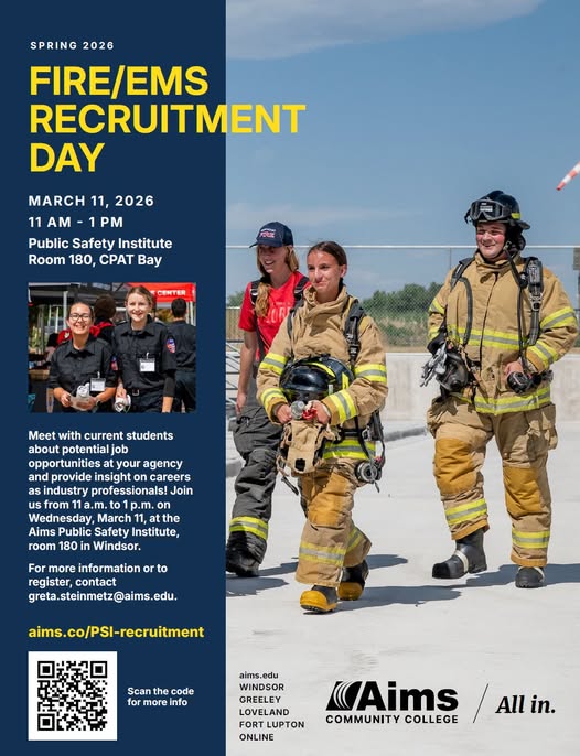 Calling All Recruitment Officers: Are you looking for the best and brightest to join your agency? Aims Community College is hosting their Spring 2026 Fire/EMS Recruitment Day, and they want you there to represent your department.